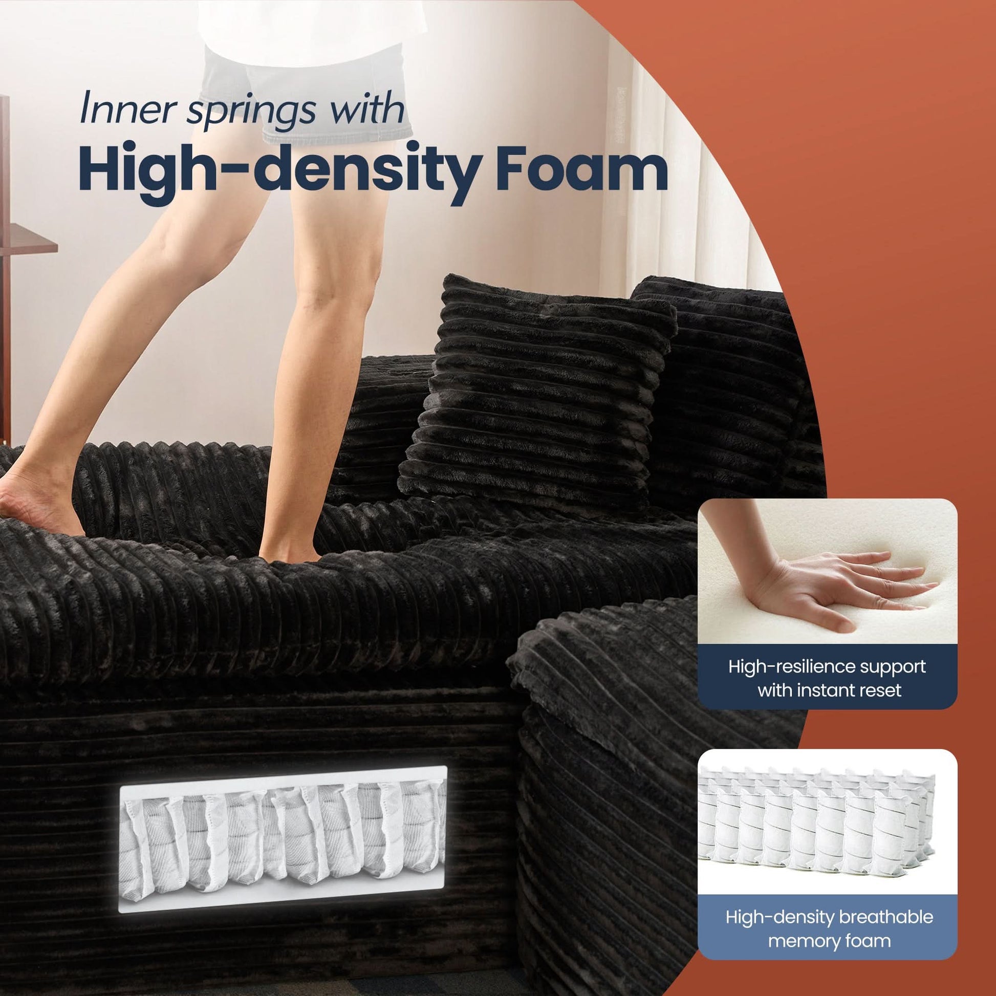 No Assembly Required:With our modular cloud chaise, assembly is a breeze—just unbox, fluff each piece, and let it spring back to shape. Full recovery takes about 72 hours. Enjoy the ease of zero setup!
