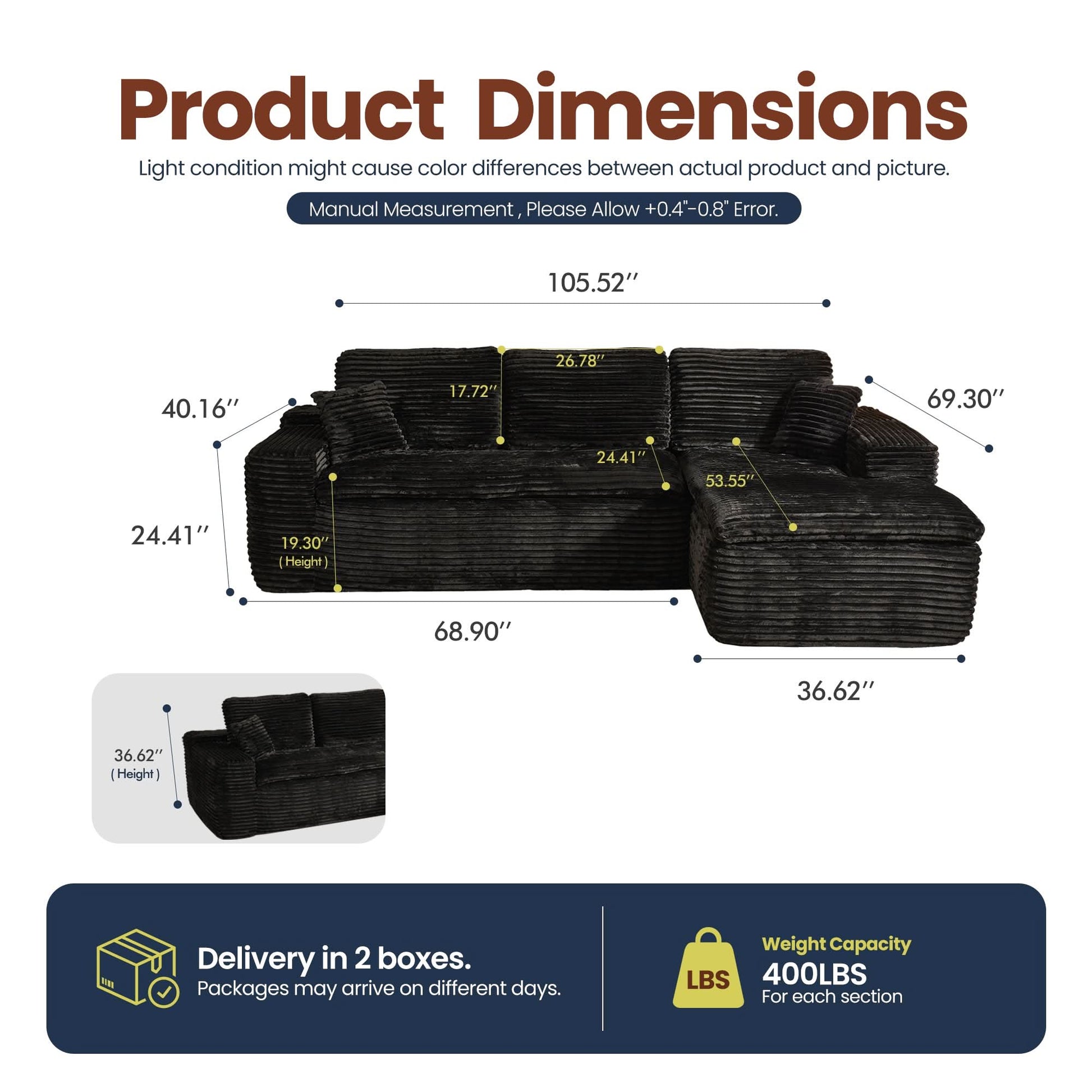 OVIOS 105" Modular Sectional Sofa with Chaise,Deep Seat Cloud Couch, Modern L-Shape