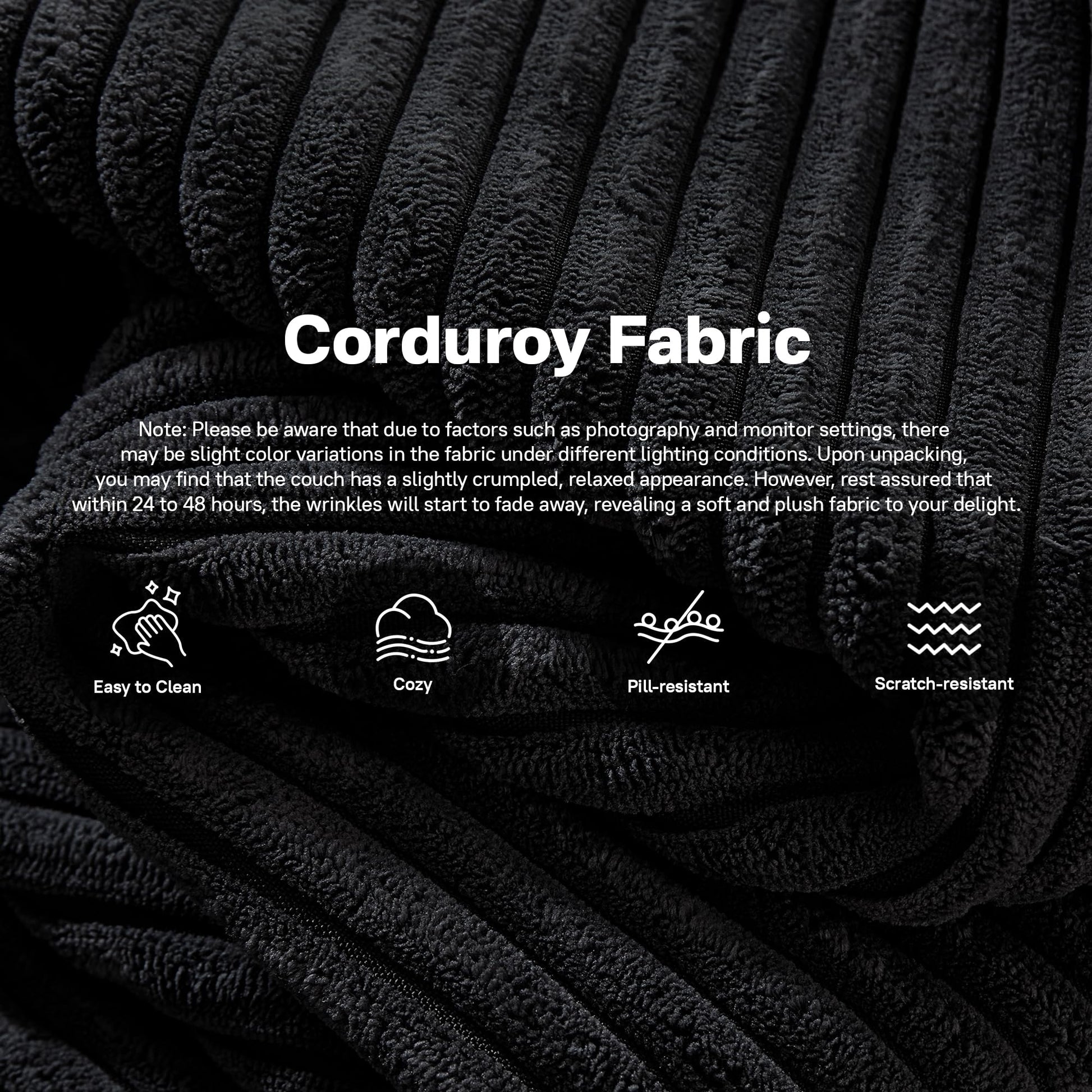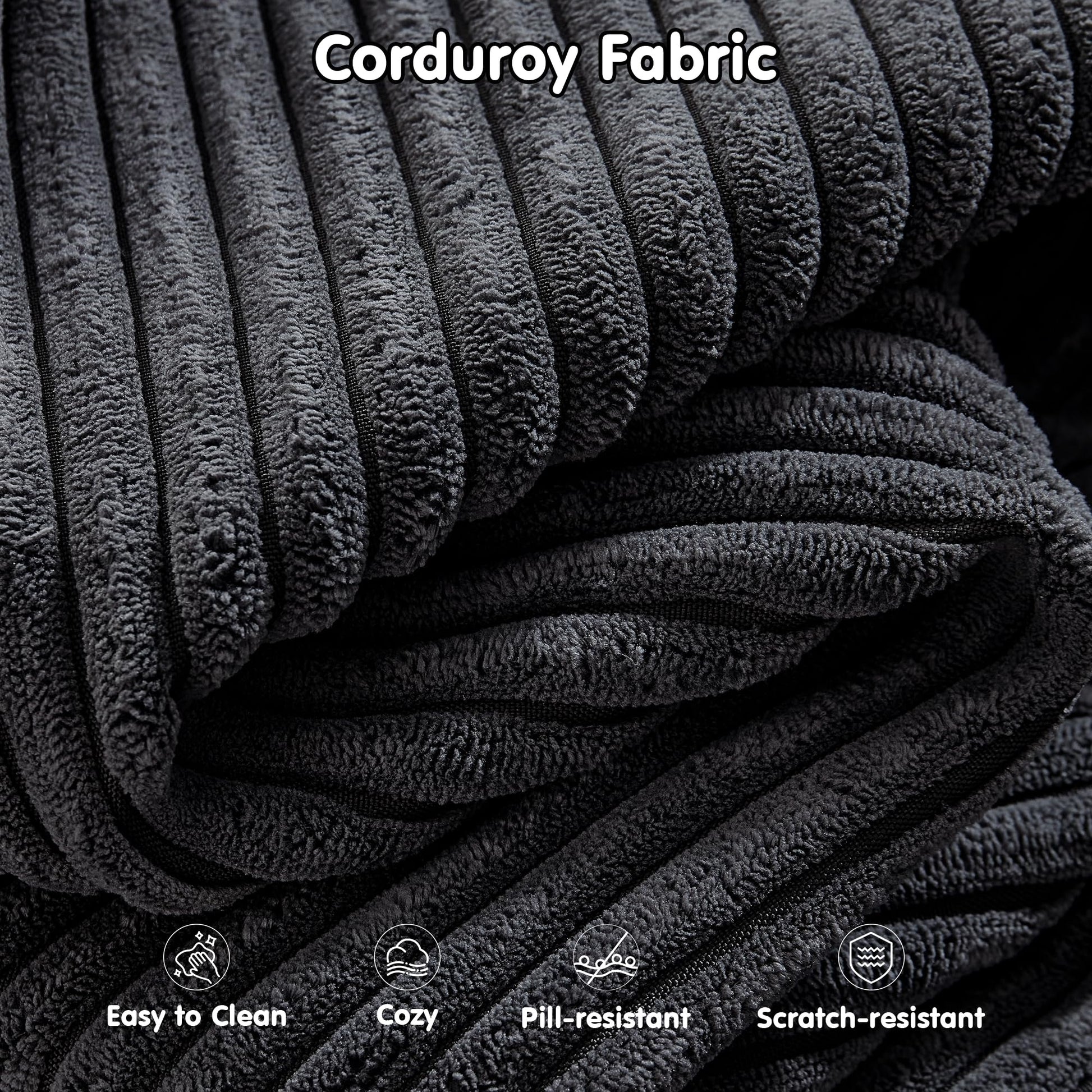 Corduroy Fabric:Wrapped in soft-touch corduroy fabric, this sofa brings a cozy, inviting texture to your living space. The material is not just comfortable—it’s also stain-resistant and durable, making it a smart choice for families, pet owners, or anyone who actually uses their furniture every day.