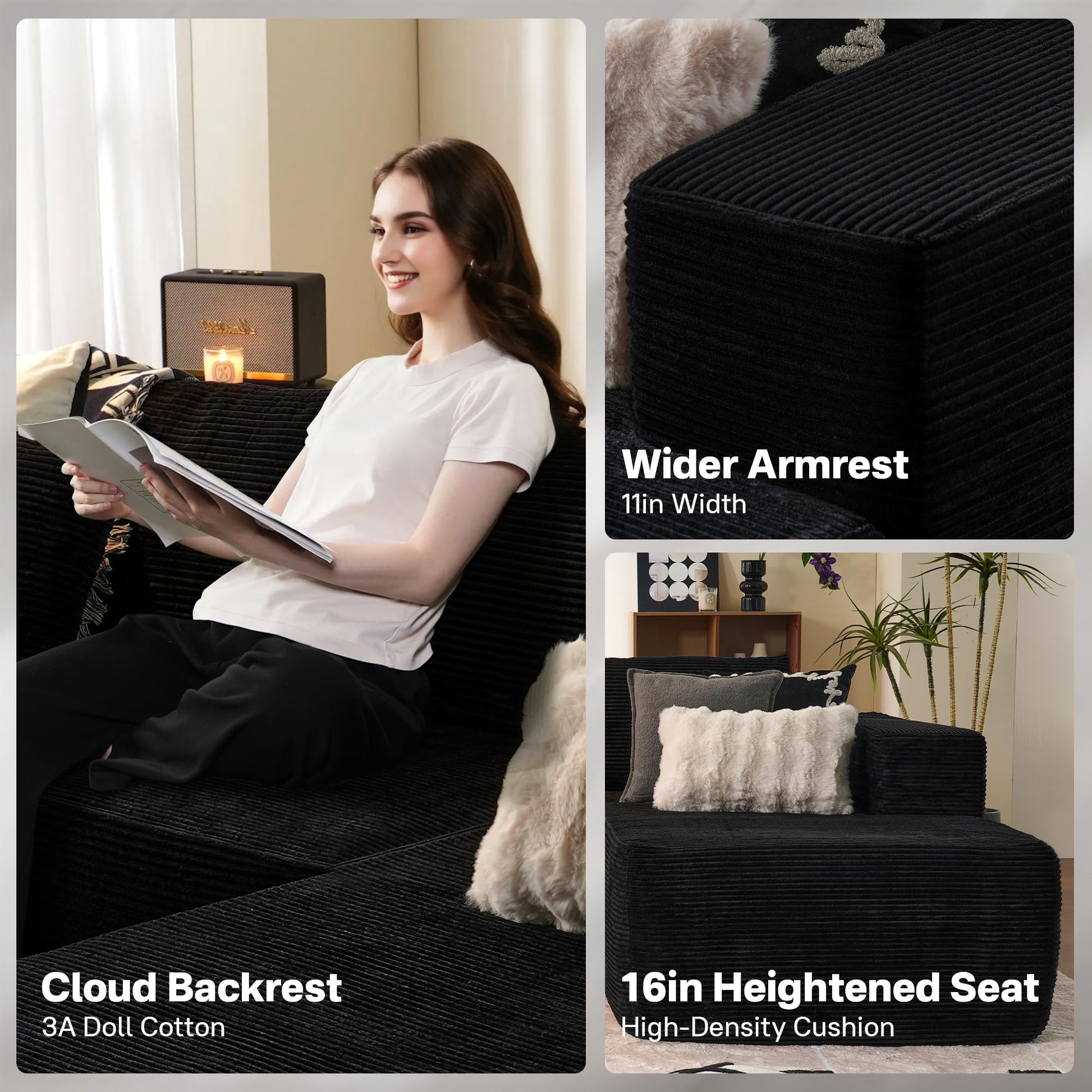 No Assembly Required:Escape the typical furniture setup hassle with our modular cloud lounge. Simply unbox all parts and lightly tap each segment to boost its springiness and poof, bringing it back to its photogenic glory. Complete revival may take up to around 72 hours. Delight in the ease of a no-assembly nirvana!